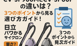 日立のキャニスター掃除機「パワかるサイクロン」シリーズの中でも、型番が似ていて迷いやすいのが CV-SP900M と CV-SP900P の2つです。どちらも軽快な操作性を強みにしていますが、発売された時期や採用しているヘッドの構造、本体カ...